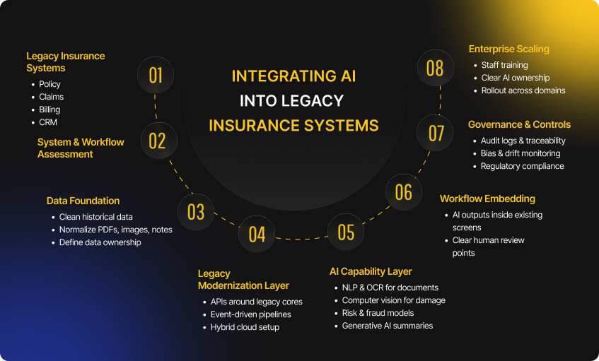 AI in insurance analyzes policy data, claims history, documents, images, customer interactions, and external risk signals.