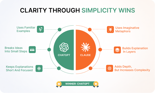 Explaining something simply is genuinely hard. It requires knowing which details to cut, not just which ones to include. A shorter, cleaner answer that a child follows completely is more valuable than a richer answer that loses them halfway through. ChatGPT showed better discipline here.