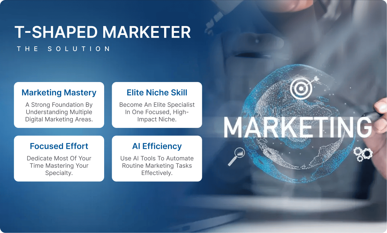 T-Shaped Marketer means having broad knowledge of the industry (the horizontal bar) but elite, top 1% expertise in one specific vertical (the vertical bar).